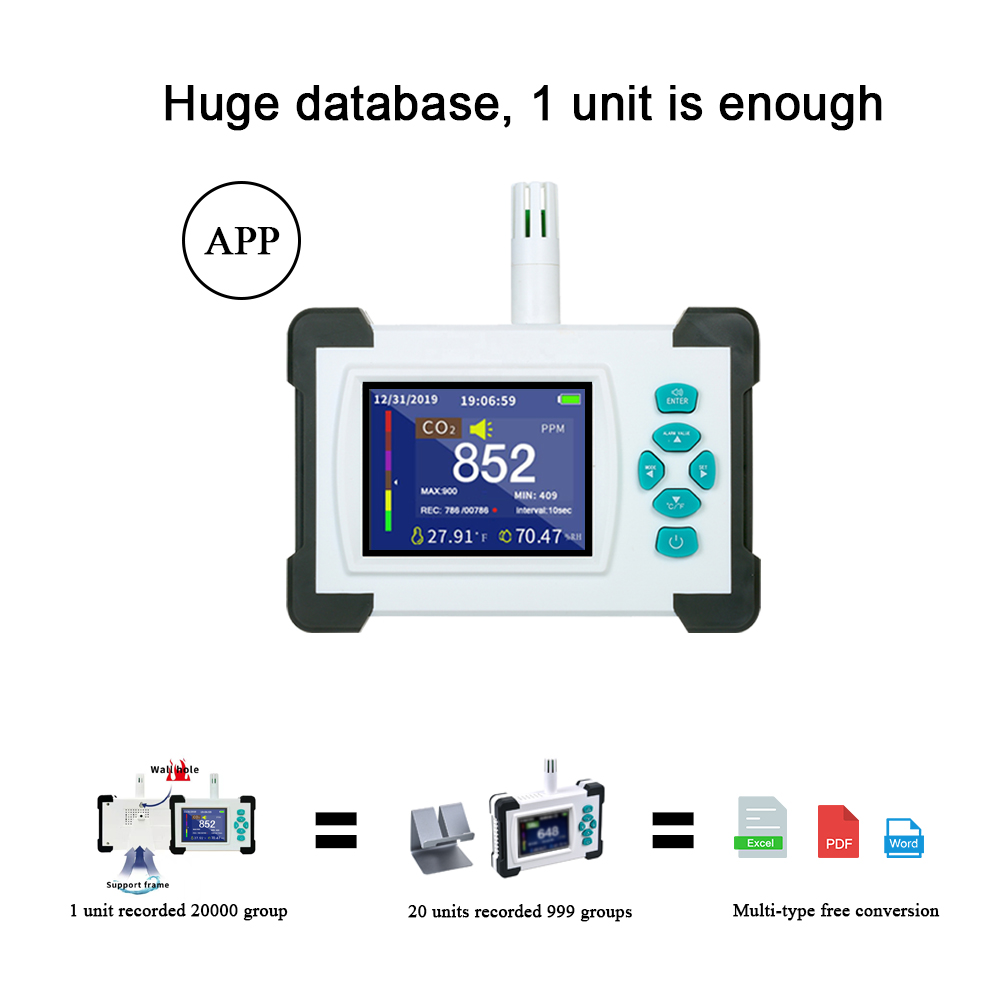 Featuring high-accuracy imported or domestic NDIR laser sensors, SR-510A stores up to 20,000 records and exports them instantly to Excel. Built-in temperature & humidity measurement, long-lasting removable lithium battery, a vibrant 3.2″ color display, and real-time alarm alerts — all in one compact, reliable device.